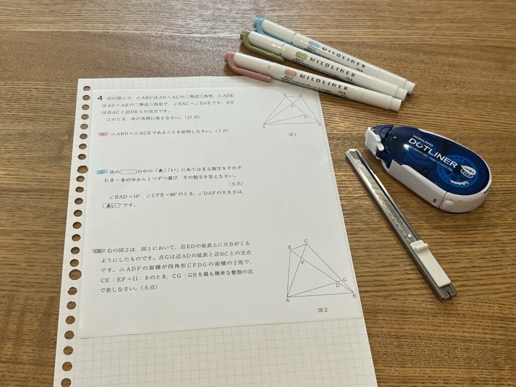「解き直しノート」を作る際、マーカーで印を付けました。